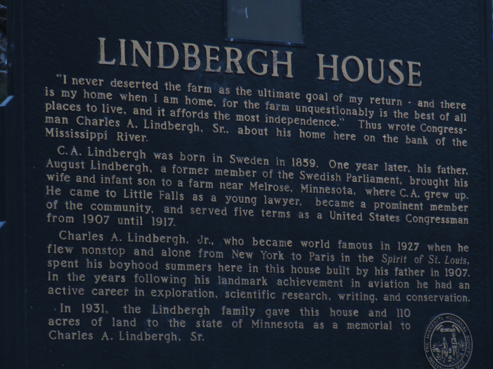 In late December 2011, I visited the Charles Lindbergh home in Little Falls, Minnesota, snapped a photo of it, and of the public history signage as well. See below photos.