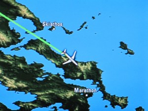I boosted the exposure on this in order to see the early morning lights in Athens a bit better. This photo was taken about 2:30AM on the inbound flight.